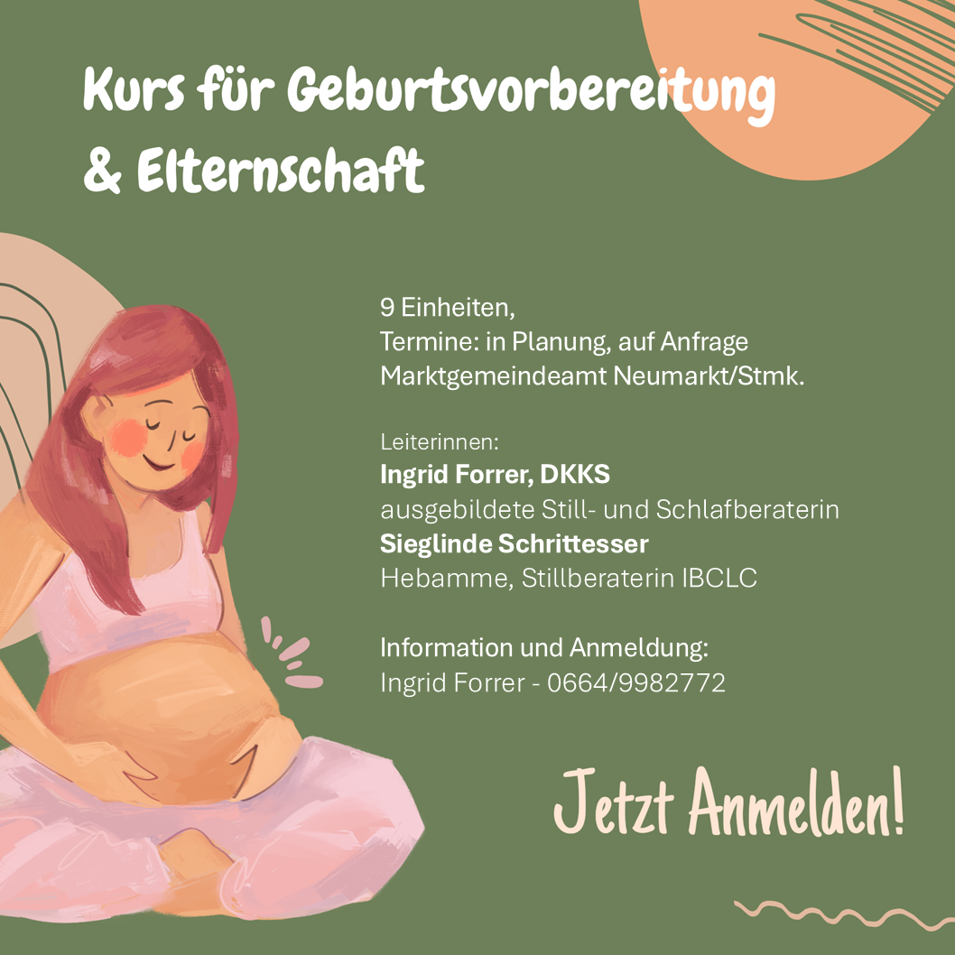 Mrz182026Posted in Neuigkeiten • Termine GeburtsvorbereitungskursGEburtsvorbereitungskurs & Vorbereitung auf Elternschaft, Stillen, Flasche, Veränderungen…. Der SPEZIELLE Geburtsvorbereitungskurs mit Vorbereitung auf Elternschaft, Stillen, Flasche…. Veränderungen in der Beziehung etc Bei Bedarf einfach jederzeit melden!